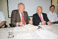 » ATO DE ASSINATURA DOS CONTRATOS E TERMO DE COOPERAÇÃO PARA EXECUÇÃO DOS PLANOS MUNICIPAIS DE SANEAMENTO BÁSICO E PARA O LEVANTAMENTO AEROFOTOGRAMÉTRICO DO ESTADO O Governador do Estado de Santa Catarina, Luiz Henrique da Silveira, e o Secretário de Estado do Desenvolvimento Econômico Sustentável, Deputado Estadual Onofre Santo Agostini, assinaram, na tarde de 12 de janeiro de 2010, no Centro Administrativo do Estado, em Florianópolis, os Contratos e Termo de Cooperação para execução dos Planos Municipais de Saneamento Básico (Lote 03), e para o Levantamento Aerofotogramétrico do Estado. Os Planos Municipais de Saneamento Básico contemplarão os Municípios de Antônio Carlos, Águas Mornas, Angelina, Anitápolis, Rancho Queimado, São Bonifácio, São Pedro de Alcântara, Alfredo Wagner, Atalanta, Aurora, Imbuia, Leoberto Leal, Petrolândia, Vidal Ramos, Chapadão do Lageado, Agrolândia, Agronômica, Braço do Trombudo, Laurentino, Rio do Oeste, Trombudo Central, Botuverá, Canelinha, Major Gercino, Paulo Lopes, Presidente Nereu e Santa Rosa de Lima.