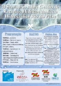 » II Seminário sobre Gestão de Recursos Hídricos da Bacia Hidrográfica Rio do Peixe O Comitê do Rio do Peixe promove o II Seminário que será realizado no dia 11 de março de 2011, no Salão Nobre da UNOESC na cidade de Videira-SC. Com a temática: Gestão de Recursos Hídricos da Bacia Hidrográfica Rio do Peixe.
